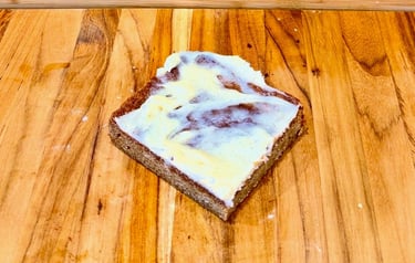 Flour, baking powder, brown sugar, butter, eggs, vanilla extract, cream cheese, powdered sugar, white chocolate chips, avocado oil